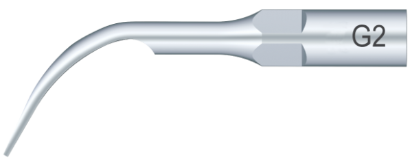 Die Scalerspitze G2 mit einer Spitzengröße von 1,7 mm eignet sich zur Entfernung von starken supragingivalen Zahnbelägen.