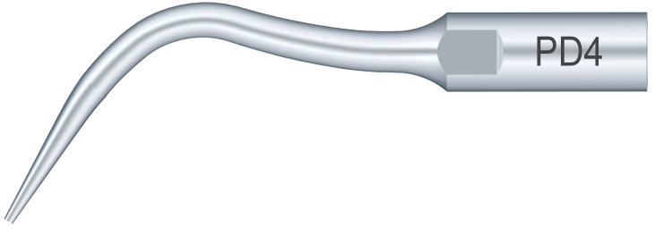 Die Scalerspitze P4 mit einer Spitzengröße von 0,5 mm eignet sich zur Entfernung von subgingivalen Belägen.