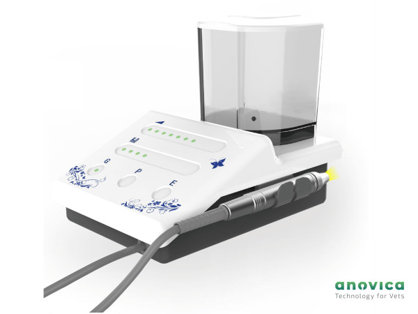 Der Scaler Pro ist ein leistungsstarkes Ultraschall-Zahnsteinentfernungsgerät für die schonende Zahnsteinentfernung beim Tier. Er ermöglicht eine stufenlose Regelung von Stärke und Wasserzufuhr für präzise Behandlungen. Mit drei wählbaren Programmen – General, Perio und Endo – lässt sich das Gerät individuell an die jeweiligen Bedürfnisse anpassen. Er ist mit einem 500 ml Wassertank ausgestattet. Das Handstück ist mit LED-Licht für bessere Sichtbarkeit der Behandlungszone. Inklusive sind 8 verschiedene Scaler-Spitzen (G4, G5, G6, P1, P3, P4, P4D, E1). Die Bedienung erfolgt bequem über einen Fußschalter, und ein Arretierschlüssel ist ebenfalls im Lieferumfang enthalten.